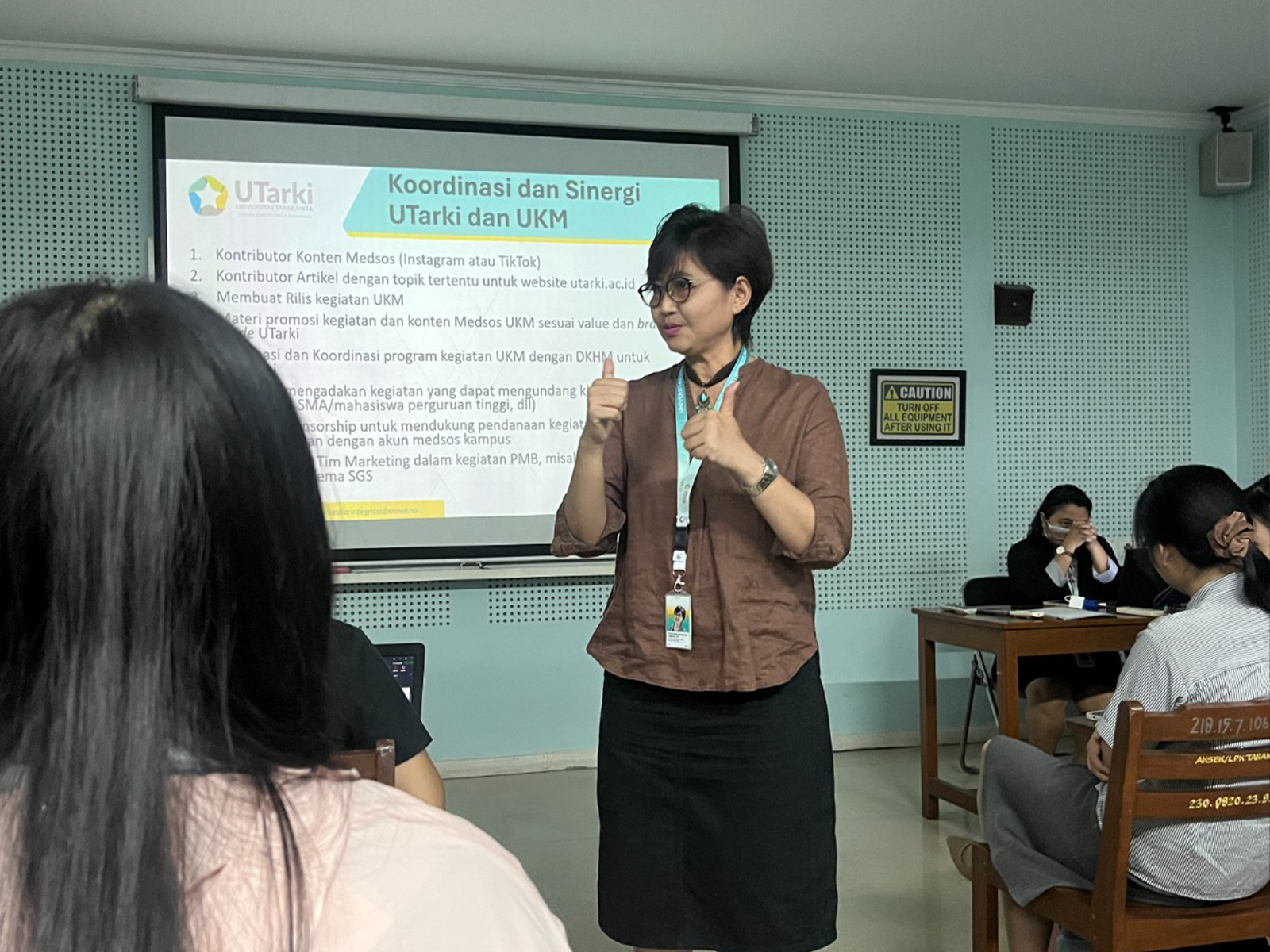Dr. Paula selaku Direktur DKHM menambahkan dalam penjelasannya, bahwa salah satu tugas DKHM adalah membangun komunikasi yang baik dengan seluruh pemangku kepentingan (stakeholder) untuk memperkuat citra dan reputasi UTarki. DKHM tidak dapat berjalan sendiri tanpa dukungan mahasiswa. “Mahasiswa memiliki posisi penting sebagai brand ambassador yang merepresentasi UTarki. Kegiatan-kegiatan positif yang dilakukan mahasiswa dapat menjadi sumber berita untuk diinformasikan sehingga publik dapat melihat hal positif dari kampus kita,” tegas Paula.