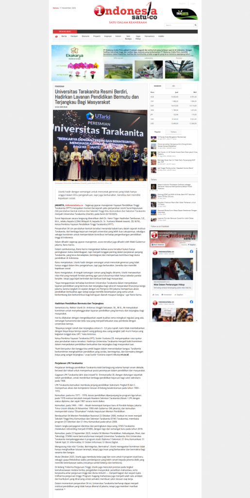 Universitas Tarakanita Resmi Berdiri, Hadirkan Layanan Pendidikan Bermutu dan Terjangkau Bagi Masyarakat
